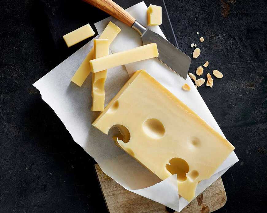 Эмменталь — вкусный сыр из коровьего молока, который выдерживают не менее 4 месяцев.