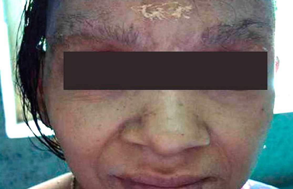 Обычно в глаза бросаются изменения в лице. Кожа становится сухой, появляются мешки под глазами, нижняя часть лица отекает, а брови и ресницы постепенно редеют (синдром королевы Анны). Мимика при этом бедная, невыразительная (рис. 2).