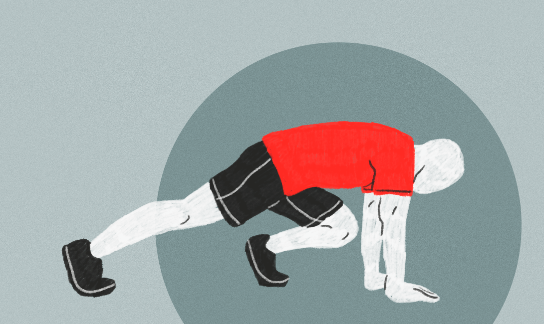 Часть 3 — Альпинист: прими упор лежа и начни на скорости заводить колени к груди.