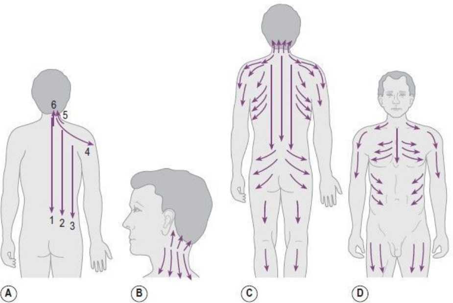 Поскольку цель процедуры – ускорить лимфоток и вывести лишнюю жидкость, во время ее выполнения все движения происходят по массажным линиям.