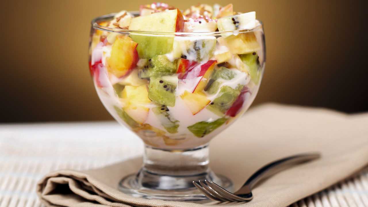 - Ужин. Салат из овощей и фруктов. В него можно добавить растительное масло.