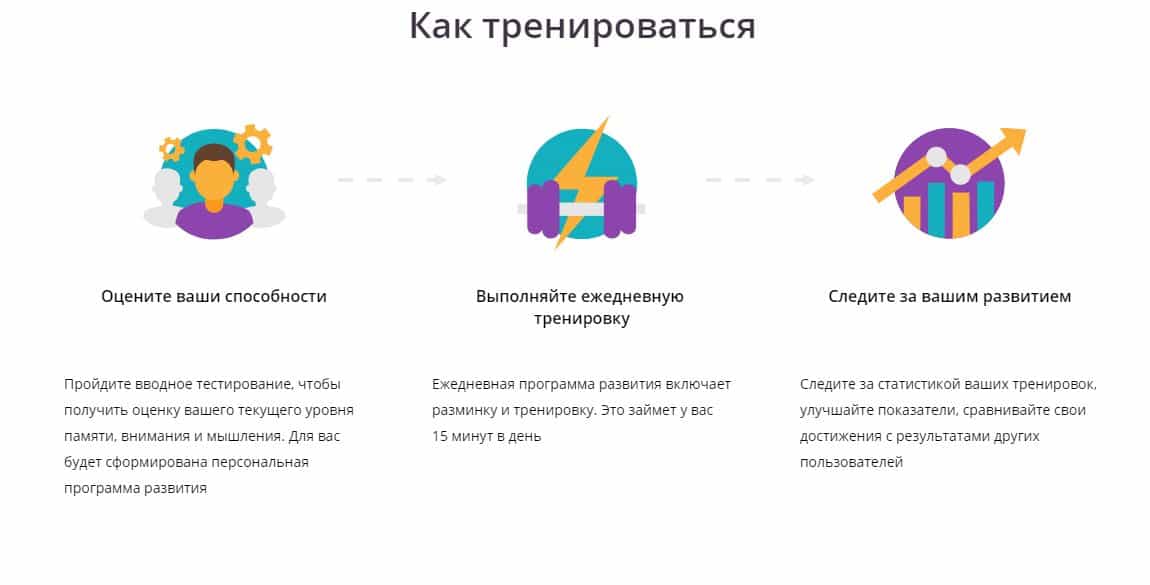Рекомендую совмещать регулярные ежедневные тренировки на сервисе с другими занятиями, которые также нагружают и развивают вашу память, внимание и мышление. Это может быть чтение книг, обучение в онлайн-университете, изучение иностранных языков и языков программирования
