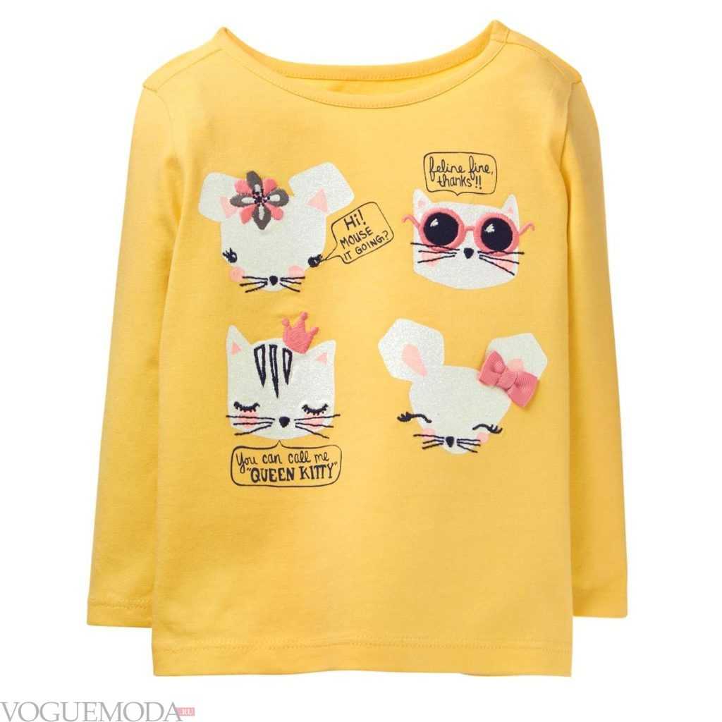 Девочки 7 лет будут в восторге от красивой и комфортной футболки с удлиненным рукавом и расширенным низом. Лонгсливы ‒ сравнительно новый тренд в детской коллекции одежды, поэтому так привлекателен для маленьких модниц. Однотонные изделия украшены спереди цветным принтом, рисунками различной тематики, надписями. В этом сезоне приветствуется яркая, насыщенная цветовая гамма, при этом в моде рукава другого цвета.