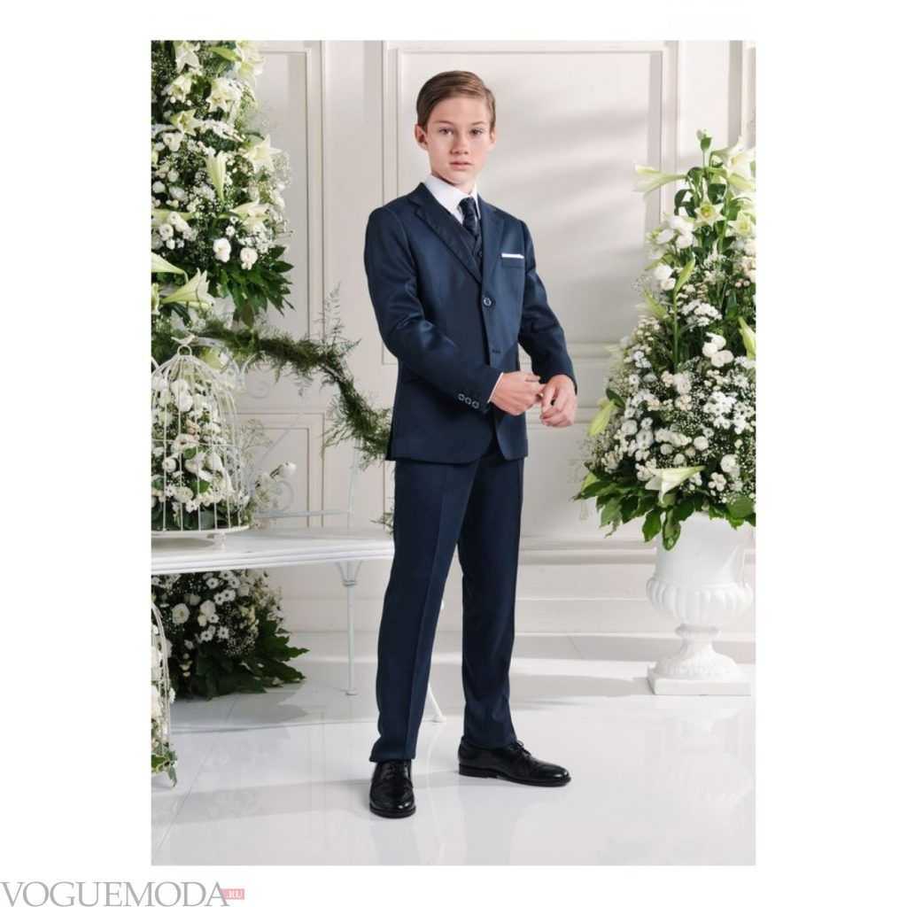 Юные джентльмены в 2021 2022 выглядят как настоящие мужчины. Актуальный во взрослых коллекциях мужественный стиль находит свое применение и в детской одежде. Популярны классические цвета: серый, синий, коричневый, черный, белый и темно-зеленый. Наряду с ними, на фото с модных показов то и дело появляются изделия голубого, зеленого, желтого, оранжевого и, даже, красного оттенка.