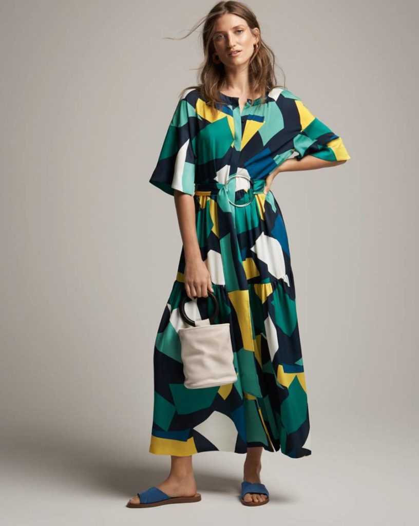 - платья с запахом, которые полюбились модницам всего мира за простоту и легкость. В нынешнем сезоне они могут быть однотонными или же декорированными яркими принтами, например, цветочными узорами, этническими мотивами, геометрическими фигурами и так далее;