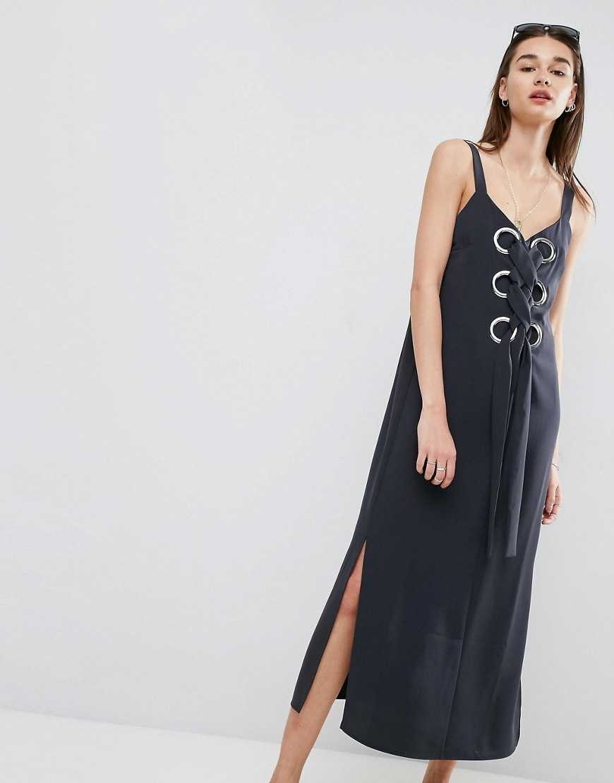 Данный наряд круто подчеркнут туфли на каблуке и джинсовая курточка или пиджак. Хорошо подойдет клатч. Для таких платьев лучше подобрать минимум аксессуаров. Стоит ограничиться кольцами или браслетами.