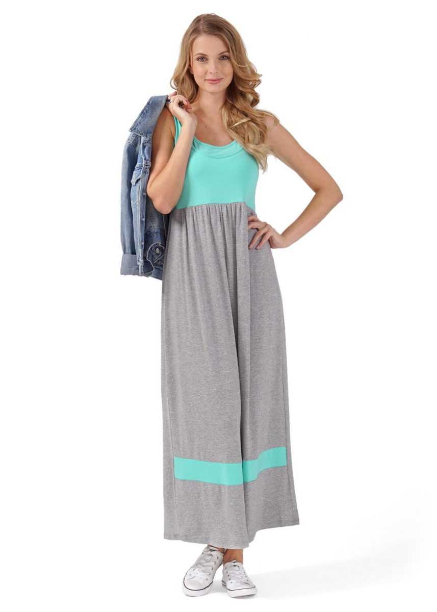 В приоритете платья с завышенной талией. Благодаря им женщина в положении не чувствует скованность и показывает прекрасный животик. Стилисты советуют беременным носить летом обтягивающие платья-майки по колено и ниже.
