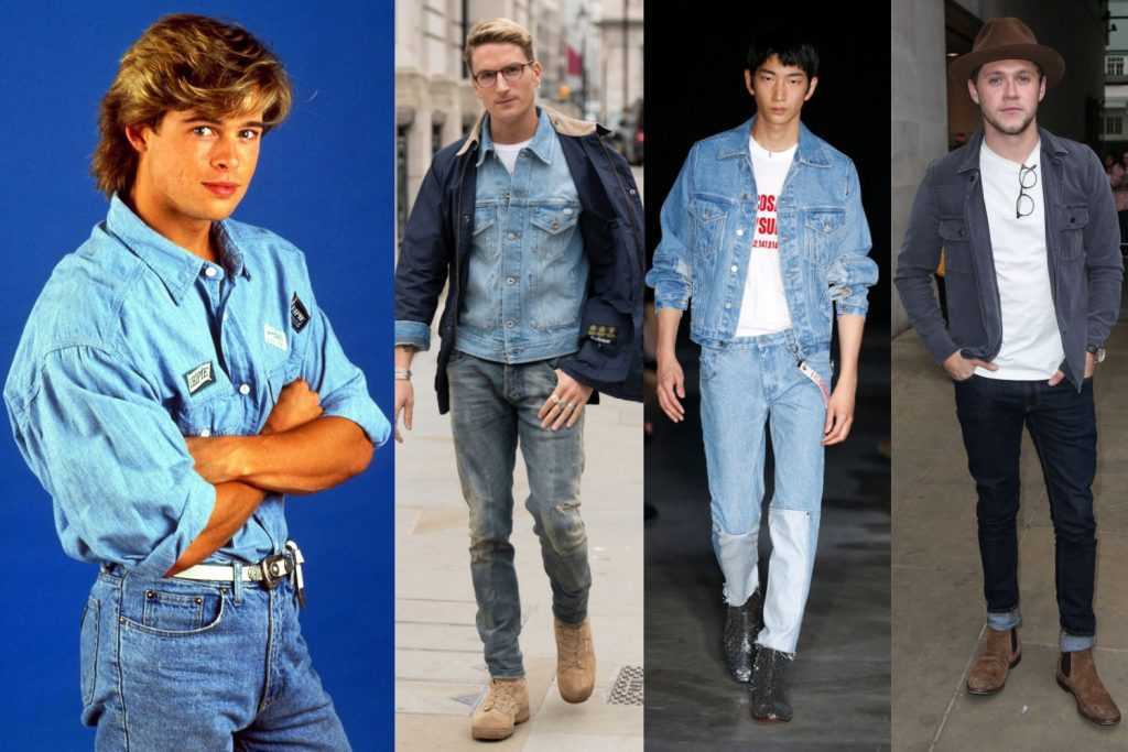 В 90-е особую популярность приобрела одежда из денима – в ней ходили абсолютно все. Это не только джинсы, но и юбки, шорты, сарафаны у девушек и комбинезоны у представителей обоих полов.