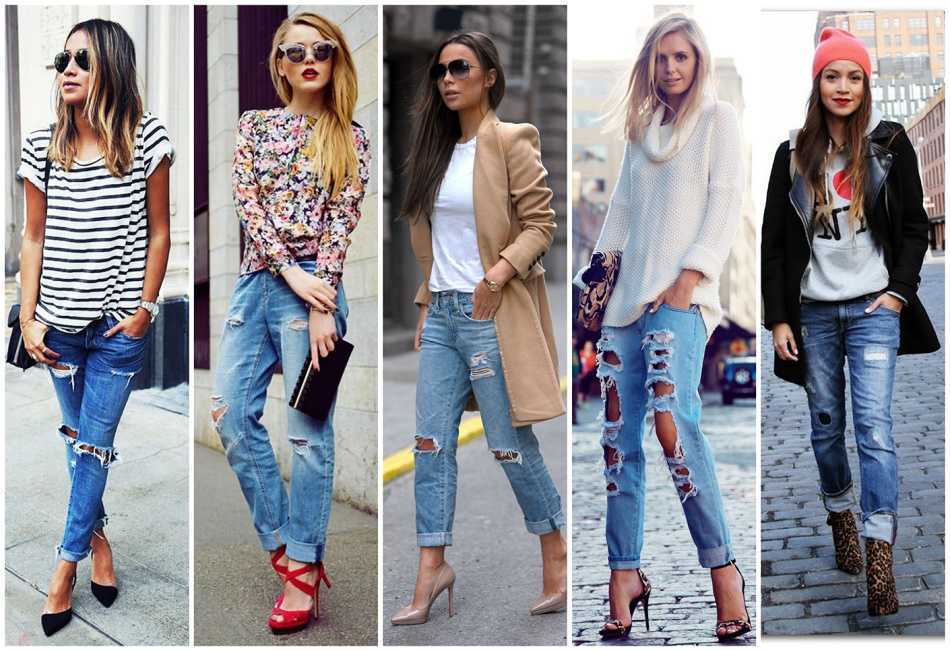 - Брюки в обтяжку, леггинсы из кожи, рваные джинсы – ко всему этому подойдет разная обувь: и «на платформе», и на высоком, и на низком каблуке.
