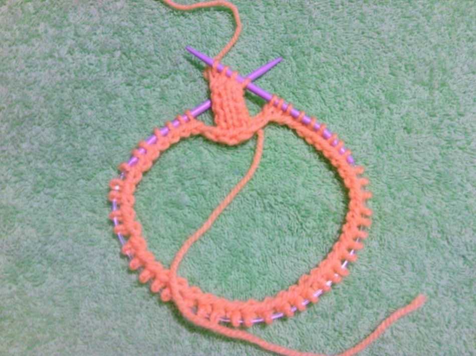 - Когда сформирована первая половина колоска, провязывают весь ряд изнаночными, затем следующий – лицевыми.