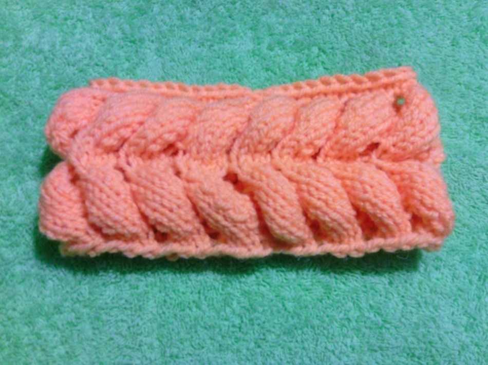 Выполнив набор спицами, нужно связать начальный рядок изнаночными петельками и новый второй лицевыми петельками, в котором нужно начать делать азиатский колосок спицами. Этот узор состоит из лент, связанных друг с другом. При этом соединении получается уголок наклона, параллельный направлению всего процесса работы.