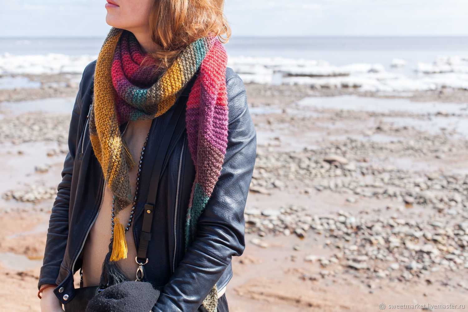 Для стиля оверсайз актуальны бактусы с объемной вязкой. За счет чередования лицевых и изнаночных рядов удается получить необычное изделие волнорез. Ажурные варианты с шишечками могут использоваться даже зимой, если состоят из нескольких слоев. Помпоны и кисточки выполняются в тех же расцветках, что и бактус, либо же отличаются на несколько тонов. В любом случае изделие сделает акцент на индивидуальности своего владельца. Шарфики, связанные своими руками, эксклюзивны, полностью соответствуют индивидуальным предпочтениям, поэтому делают любые образы неповторимыми.