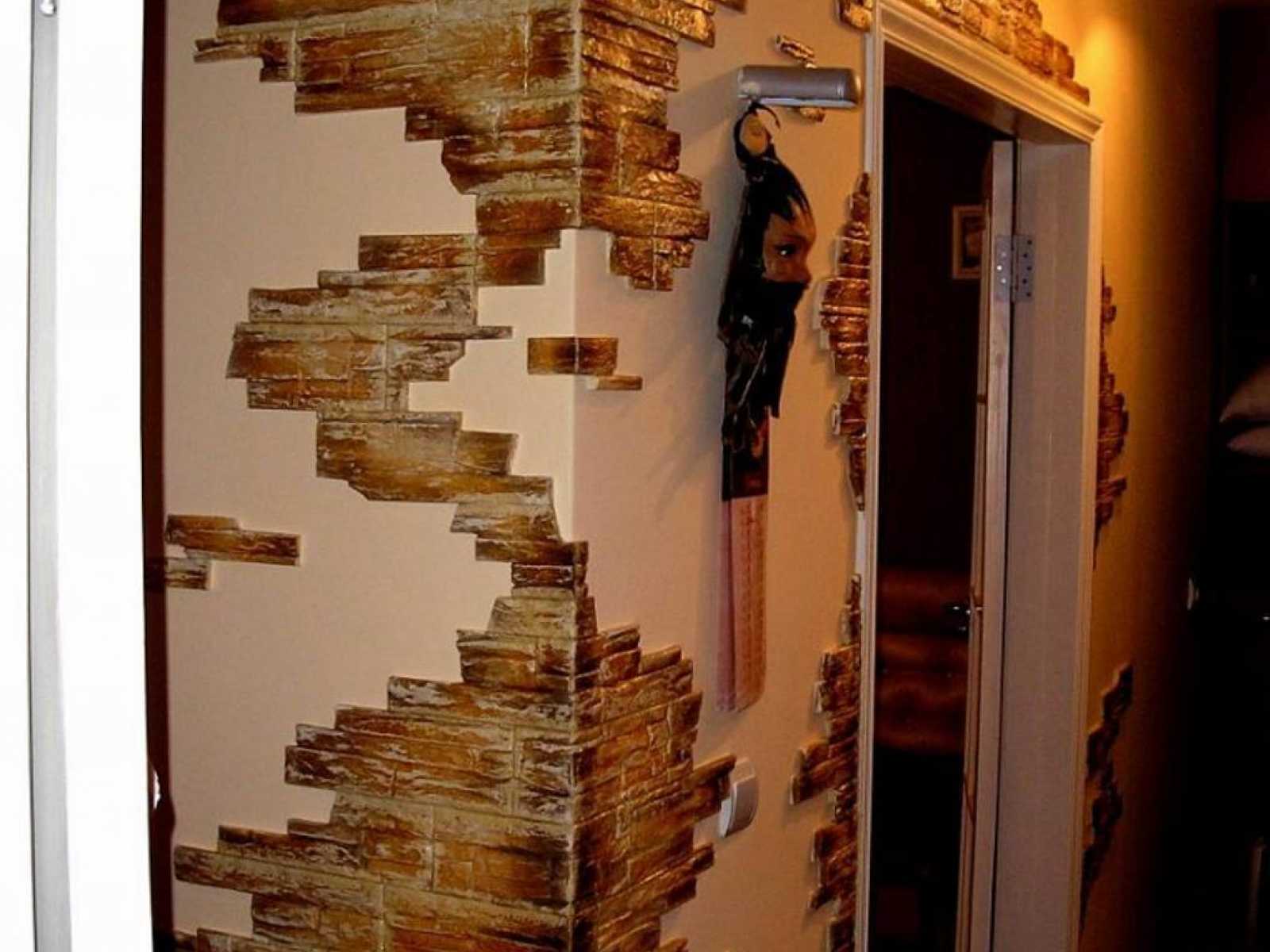 Они продаются в виде цельных панелей, которые при необходимости разрезаются при подгонке на куски нужного размера. Изготавливают такие декоративные панели из гипсокартона, пенопласта и пластмасс. Полиуретановые и пластиковые плиты достоверно имитируют очертания каждого дикого камешка, но легко могут повредиться от механического воздействия (удара), поэтому долговечными их назвать нельзя.