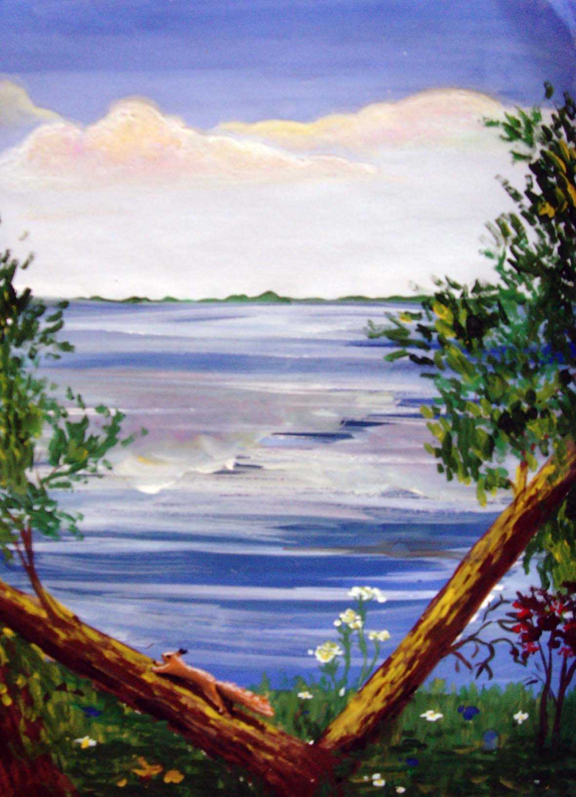 При создании рисунка необходимо сначала обозначить границы воды, воздуха, прорисовать песок, добавить растения. Все эти наброски желательно делать простым карандашом, линии должны быть едва заметными, чтобы их при необходимости можно было забрать.