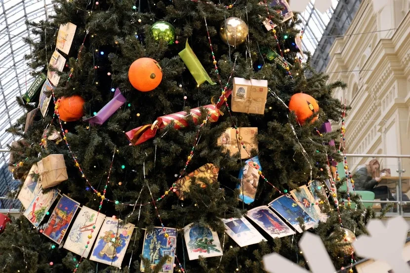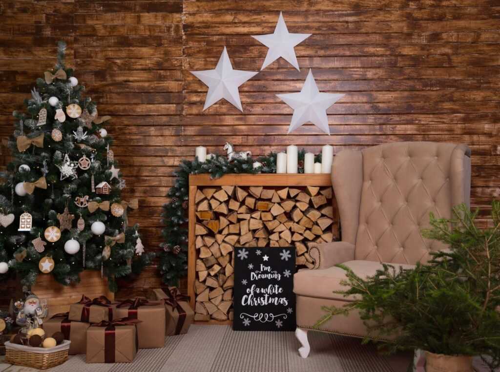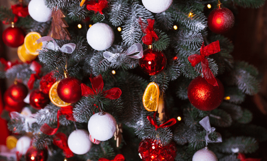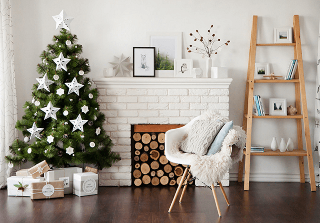 Предполагает небольшое количество рождественского декора. Обычно вешают длинные гирлянды из слов с хорошими пожеланиями или фото. Обязательно ставят под елку новогодний символ, а также украшают крупными пышными бантами, звездами, прозрачными шарами. Само деревце должно быть средним или большим.