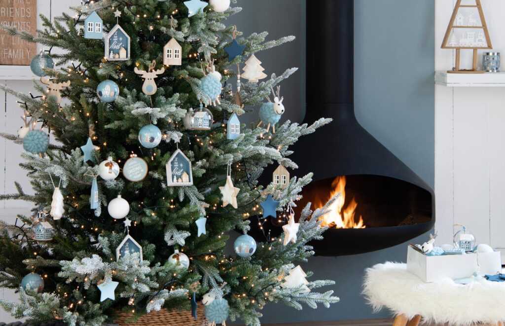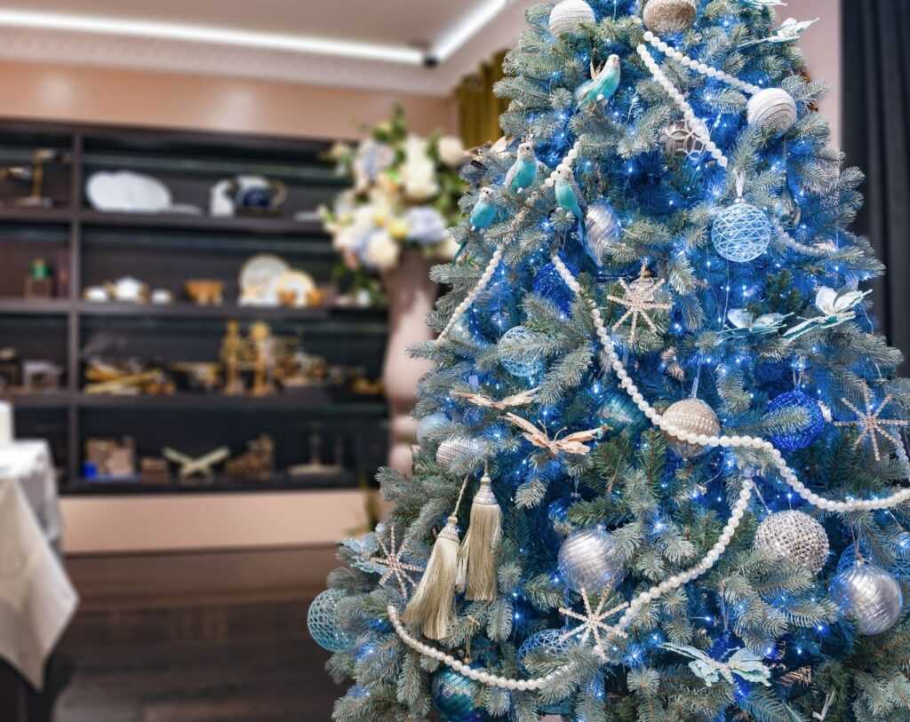 синий, белый и серебристый – классическое сочетание новогодних украшений.