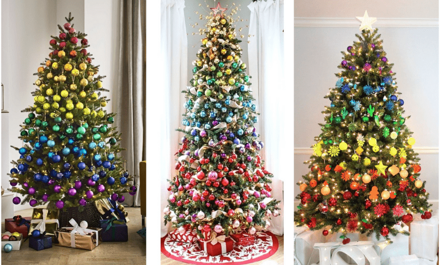 Уже давно не модно вешать все игрушки, которые только есть в домашних запасах. Но не обязательно отдавать предпочтение только одному цвету – их можно сочетать. Главное – делать это грамотно.