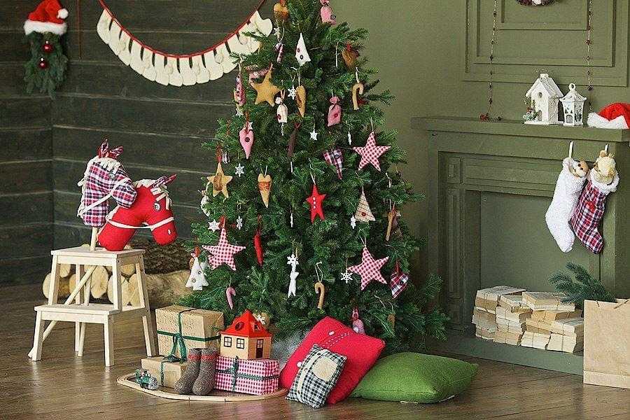 Под этим понятием скрывается то, что «сделано руками». Уникально смотрится хвойная красавица, украшенная игрушками, которые сшиты из ткани, сделаны из дерева, гирляндами из бумаги, сушеными фруктами или сладостями.