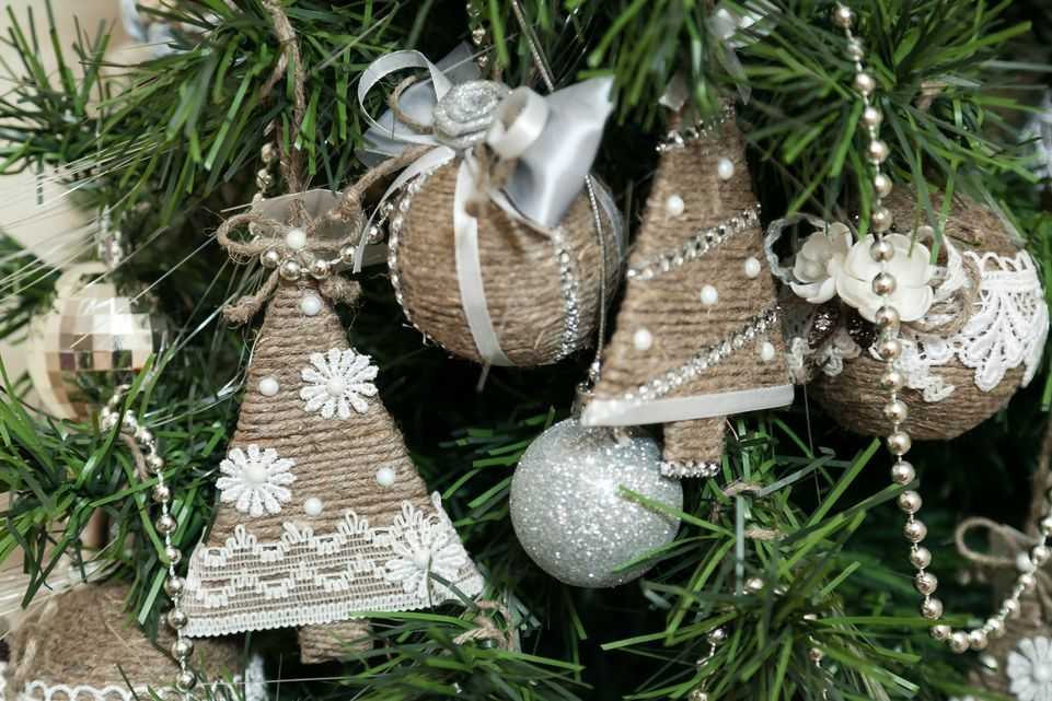 на новогодней елке отлично будут смотреться игрушки, сделанные собственноручно. Например, можно сделать самодельные игрушки из картона, папье-маше, обыкновенных ниток. Также вы можете украсить елку при помощи оригинального новогоднего печенья или конфет: такому варианту наверняка обрадуются ваши дети.