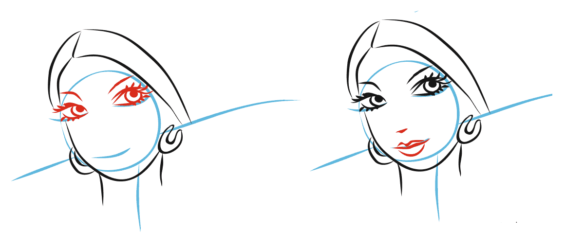 - Обводят все контуры лайнером или ручкой. Стирают лишние линии и следы от карандаша.