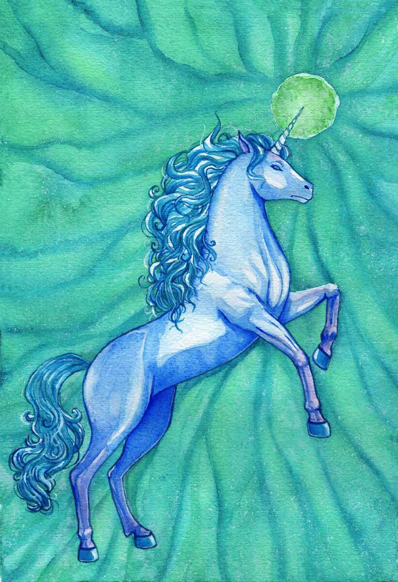 - почти что реалистичные изображения, обычно изначально рисуют обычную лошадь, затем добавляют рог, красивую и неестественно длинную гриву, т.д.
