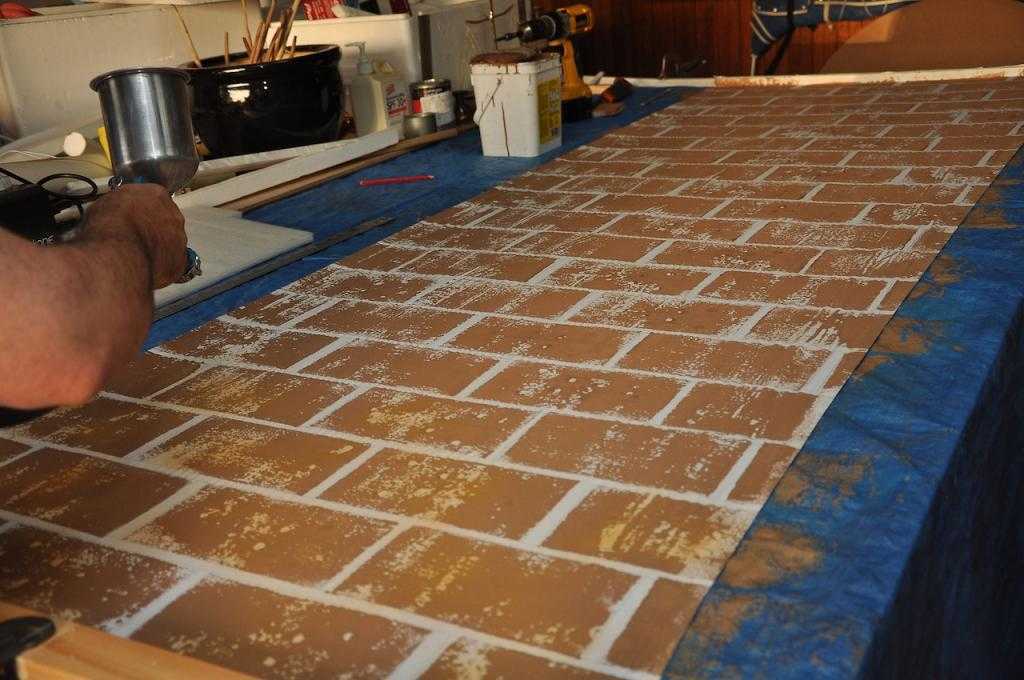 Начинающим не нужно сразу браться за масштабную работу. Сначала учатся наносить кистью краску и точно прорисовывать линии на картонном листе. А после практики надо нарисовать кирпичную стену. Какие инструменты потребуются:
