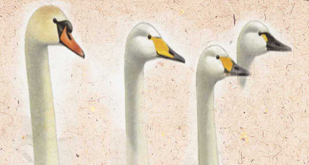 На этой картинке показано какие виды клювов бывают у лебедей.