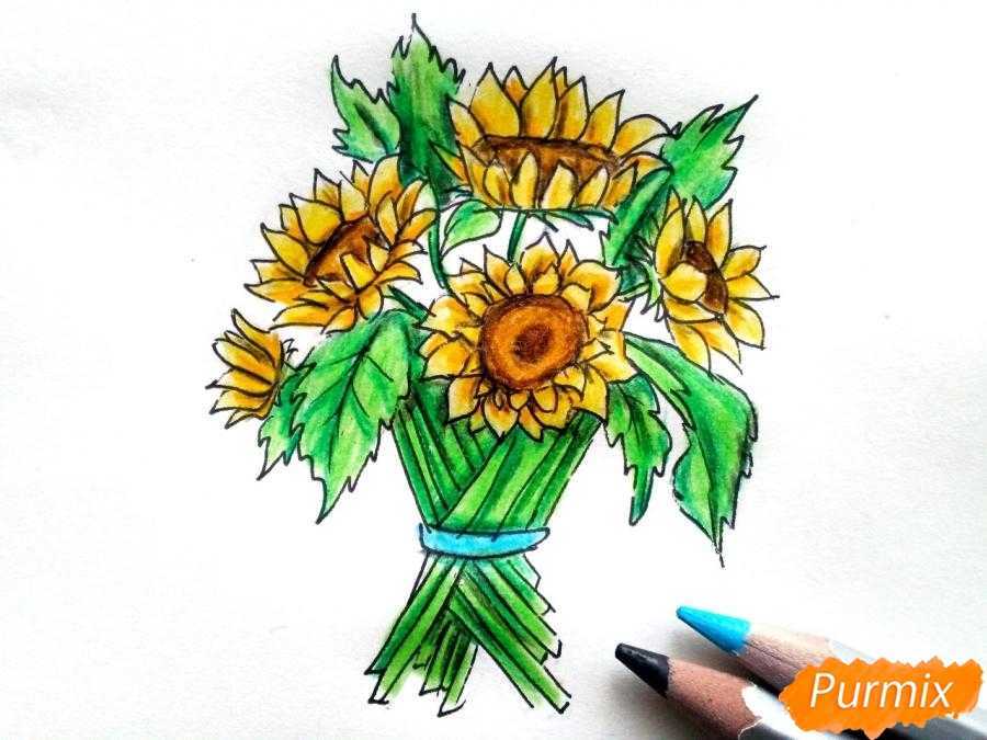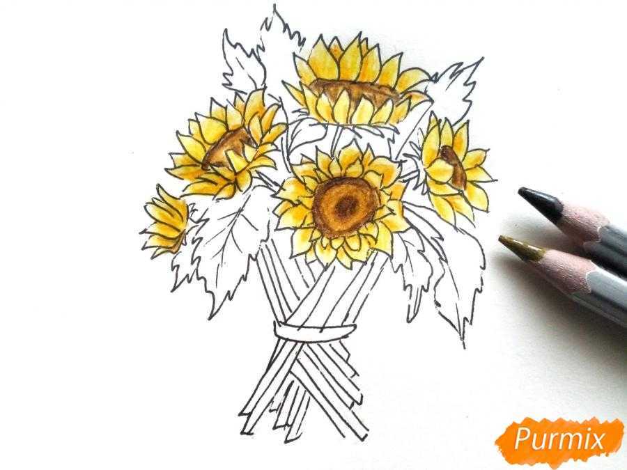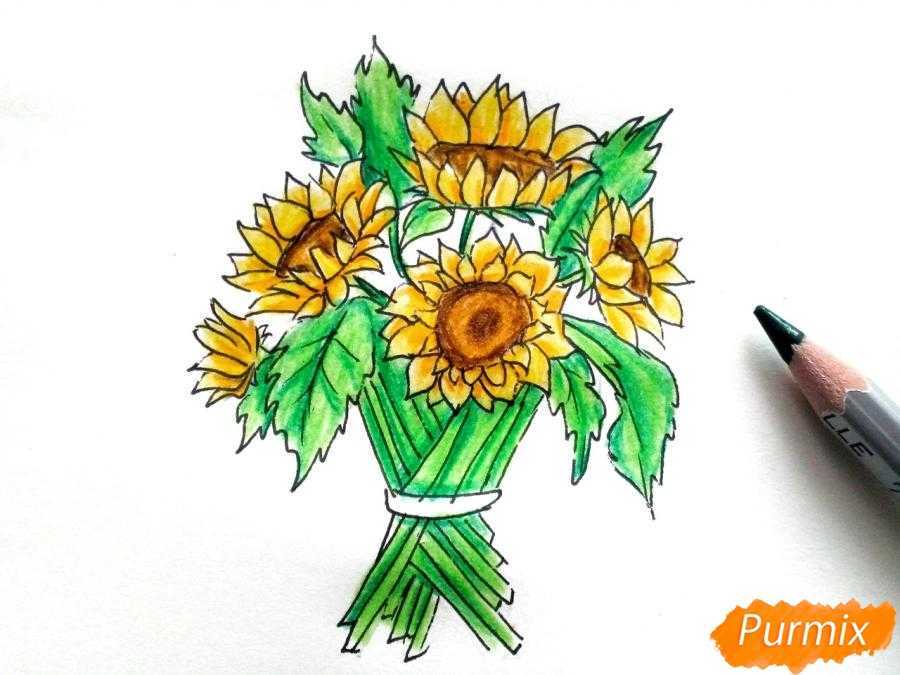 Вот теперь ясно, как рисовать букет подсолнухов.