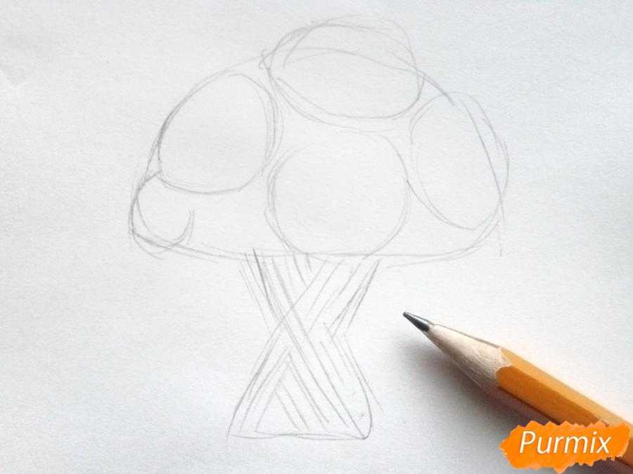 - Затем, определив расположение бутонов, изобразить их в разной степени раскрытости.