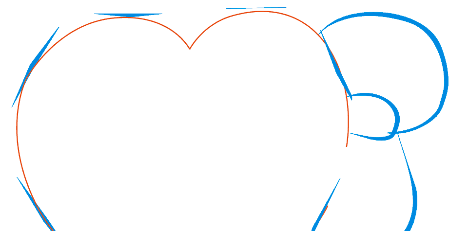- Переходим к рисованию контура головы мишки. Дорисовываем маленькие уши.
