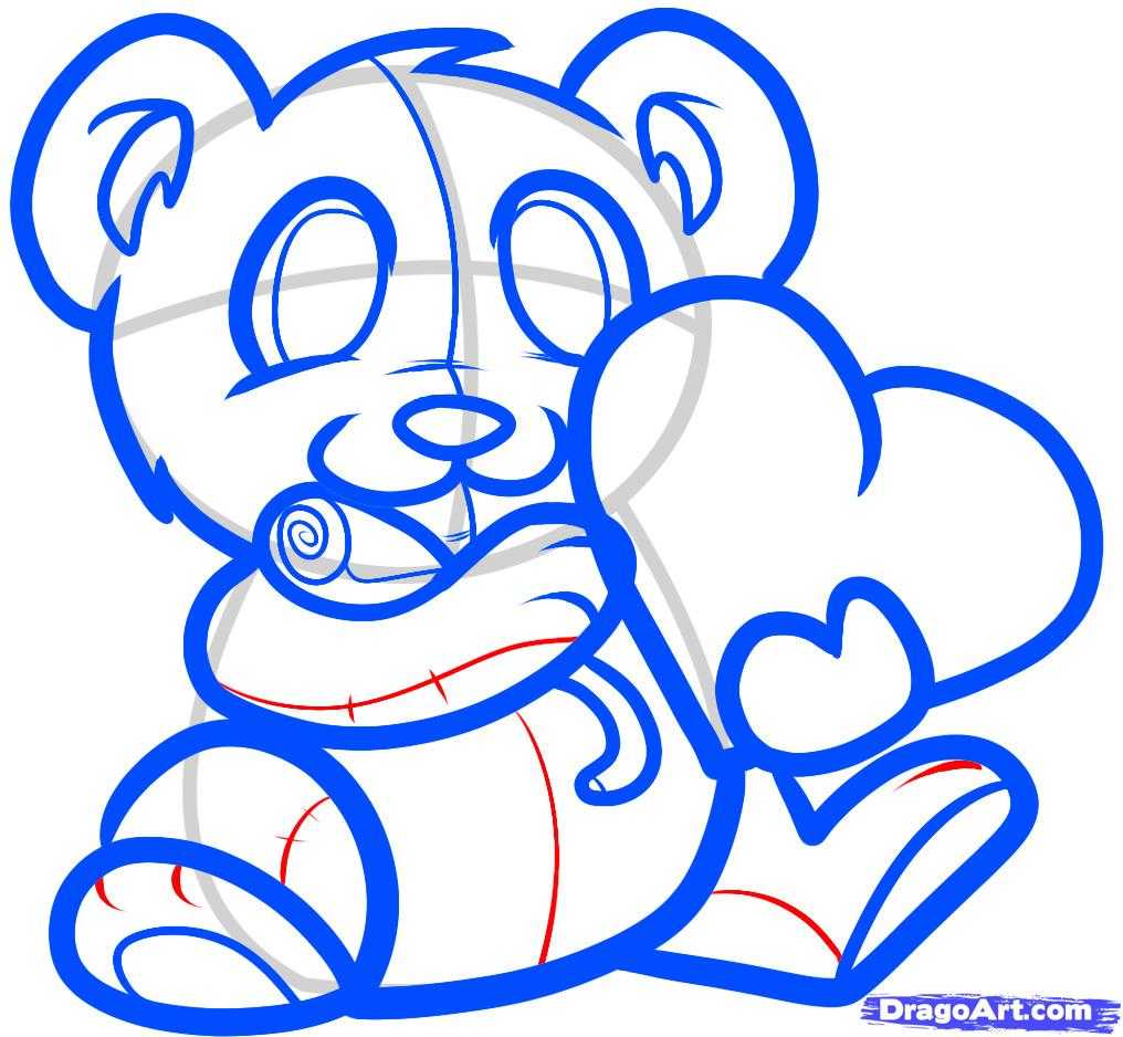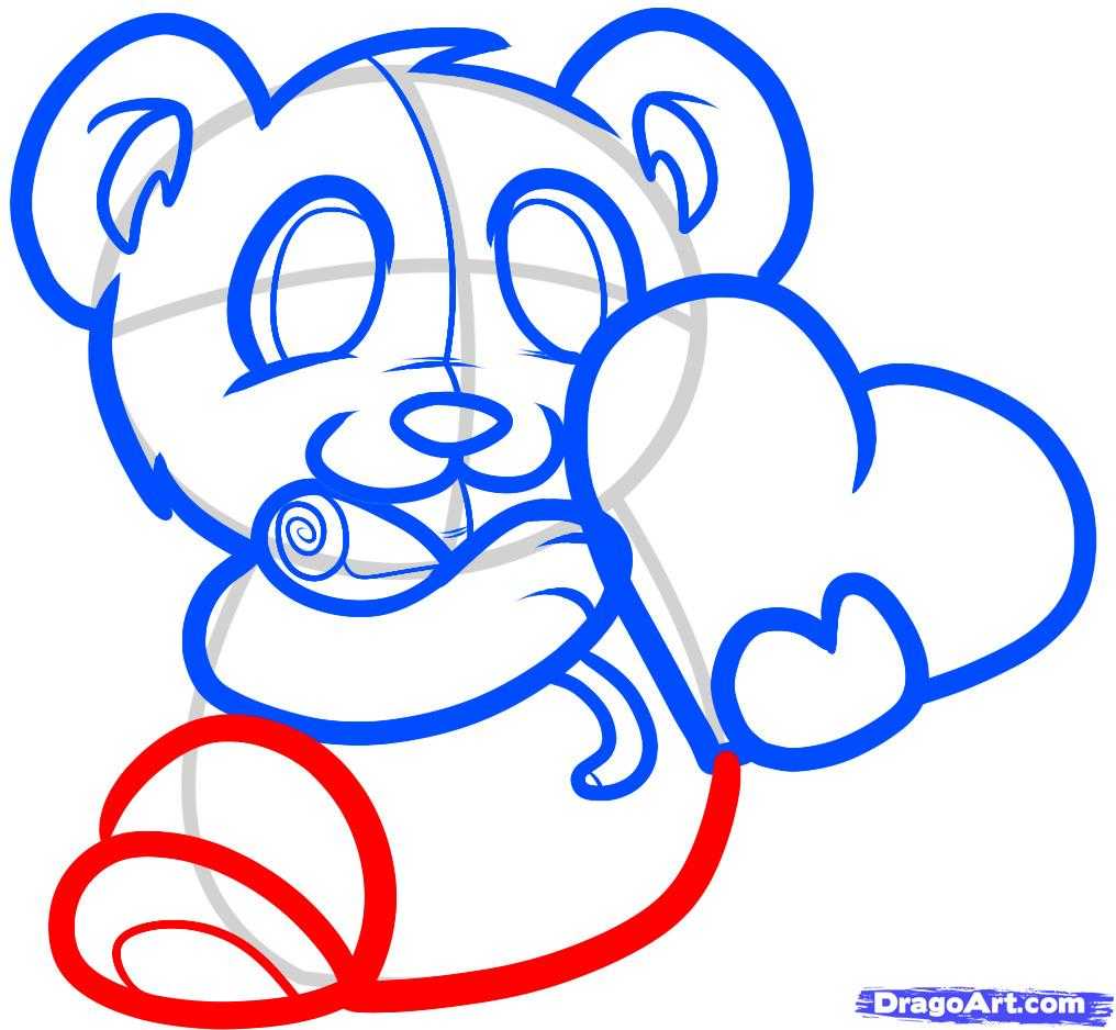Как нарисовать мишку с валентинкой карандашом поэтапно