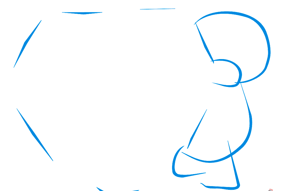 Начинаем рисовать мишку с простого – а именно с основы. Я рисую круг, который станет головой, ниже вытянутая фигура, а от нее четыре линии — лапки мишки.