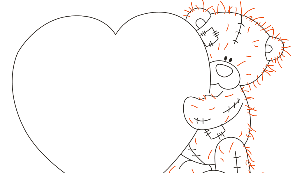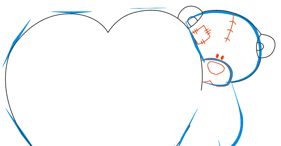 Отлично, теперь нарисуйте контуры лица и сердце которое он держит в левой лапе.