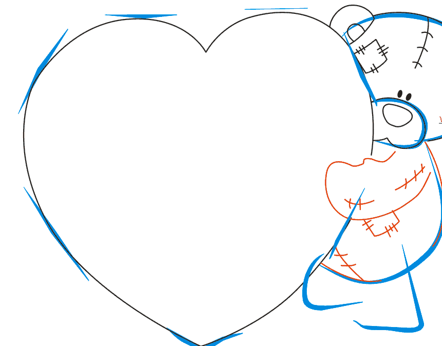 На сердце в местах, где его затрагивают лапы медвежонка, обязаны быть складочки. Их следует изобразить коротенькими линиями.