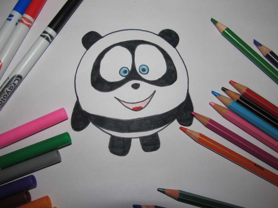 Дети любят рисовать животных, но переносить на бумагу мультяшных зверушек намного интереснее. Предложите ребенку нарисовать такую панду: