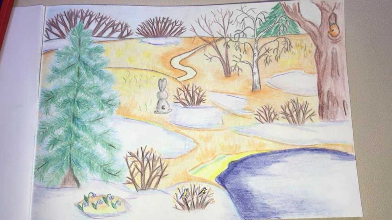 Весенняя пора для многих людей — это самое любимое время года, потому что с ее наступлением природа пробуждается к жизни после зимней спячки. Распускаются цветы, безмятежно поют птицы под окном, текут ручьи от только что растаявшего снега. Давайте вместе с детьми нарисуем первый теплый день в лесу!