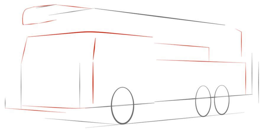 Верхняя часть прямоугольной коробки наброска – будущая лестница, в сложенном виде располагающаяся на крыше. Несколькими линиями отделим ее от основной части.