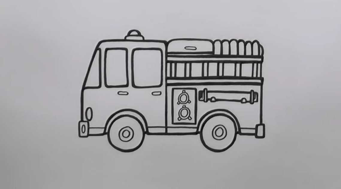 Доступно объяснить, как рисовать пожарную машину ребенку можно при помощи этой последовательности, достаточно простой для начинающих художников.
