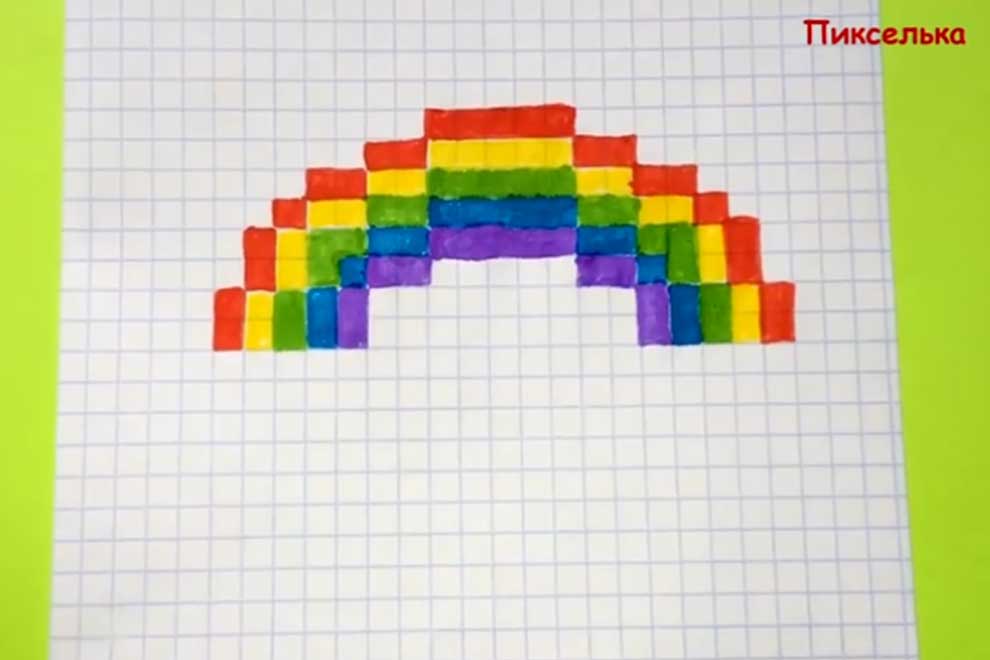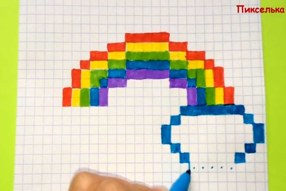 - Давайте, в правой части радуги, снизу, добавьте 7 синих клеточек.