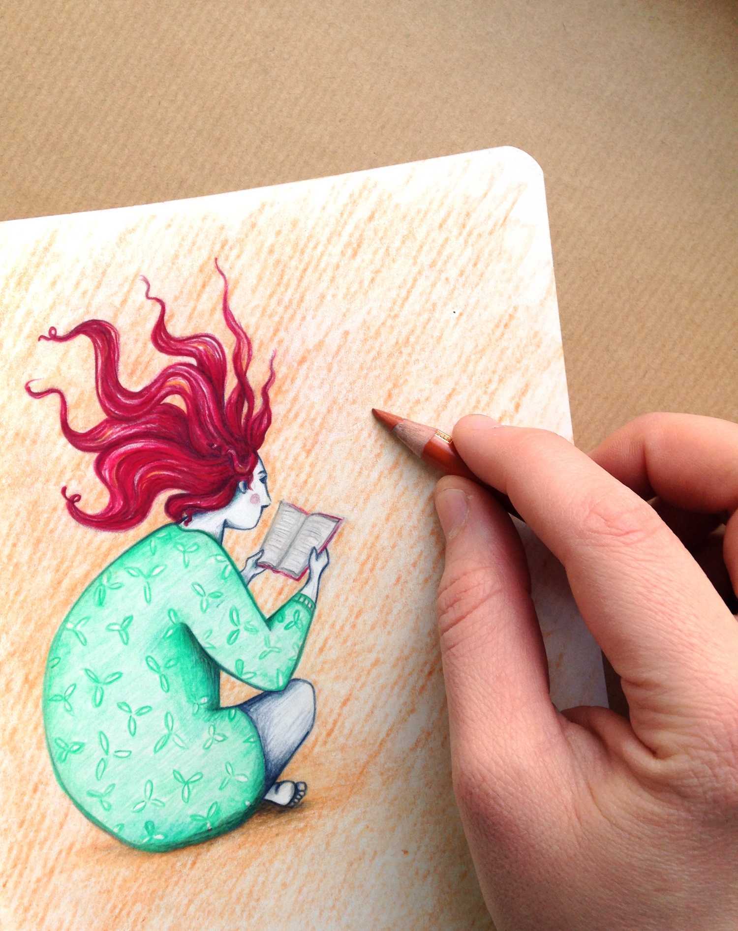 Я часто слышу, что для рисования цветными карандашами лучше использовать гладкую бумагу, потому что на ней они легко смешиваются и перетекают друг в друга. Но я думаю, что избегание зернистой бумаги лишает характера и очарования, которые могут дополнить рисунок.