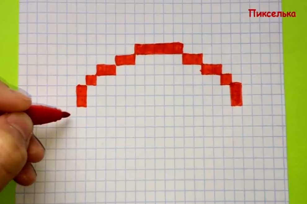 - Получилась красная полоса дугой вниз. Она занимает 17 клеток в ширину и 6 в высоту.