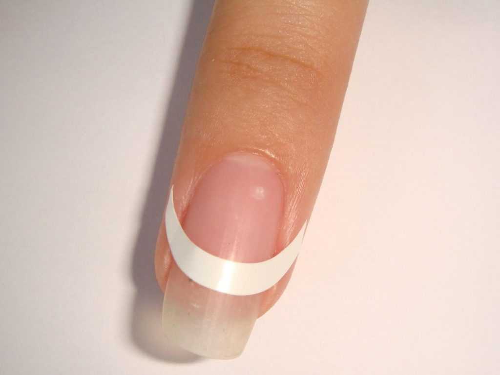 - После того, как вы точно определились, приклейте эту полосочку на ноготь, сняв с нее защитную пленку.