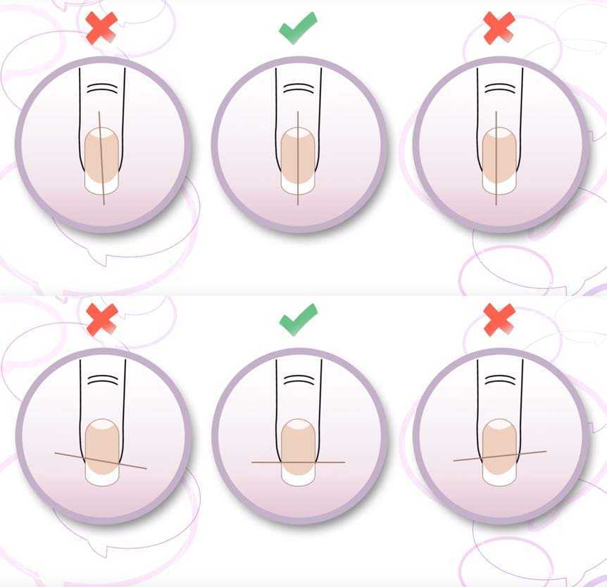 - Приложите к своему ноготку одну полосочку, чтобы обозначить, где у вас будет проходить линия для закрашивания.