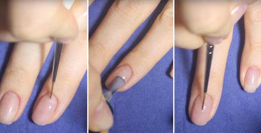 - чтобы не повредить поверхность ногтя острой иголкой, необходимо нанести базовое покрытие или прозрачный лак.