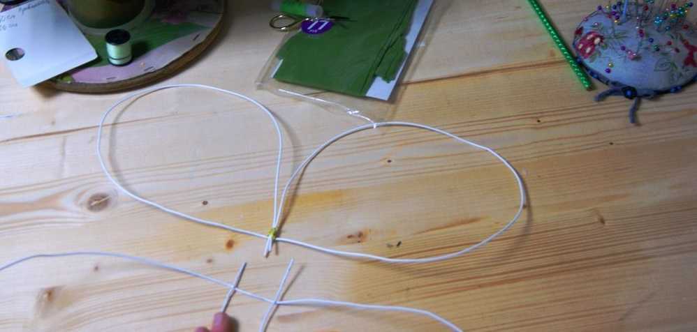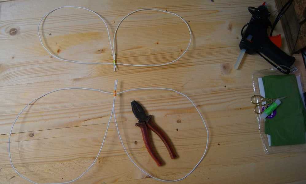 Сделать крылья бабочки на проволочном каркасе не сложнее, чем тканевые или из картона. С этой задачей сможет справиться каждая мама, даже та, которая никогда ранее не занималась рукоделием. Для создания изделия необходимо подготовить материалы: проволоку длиной 1,4 м, капроновые колготки или чулки, резинку для крепления (хватит 0,8 м). Далее необходимо придерживаться обозначенной последовательности: