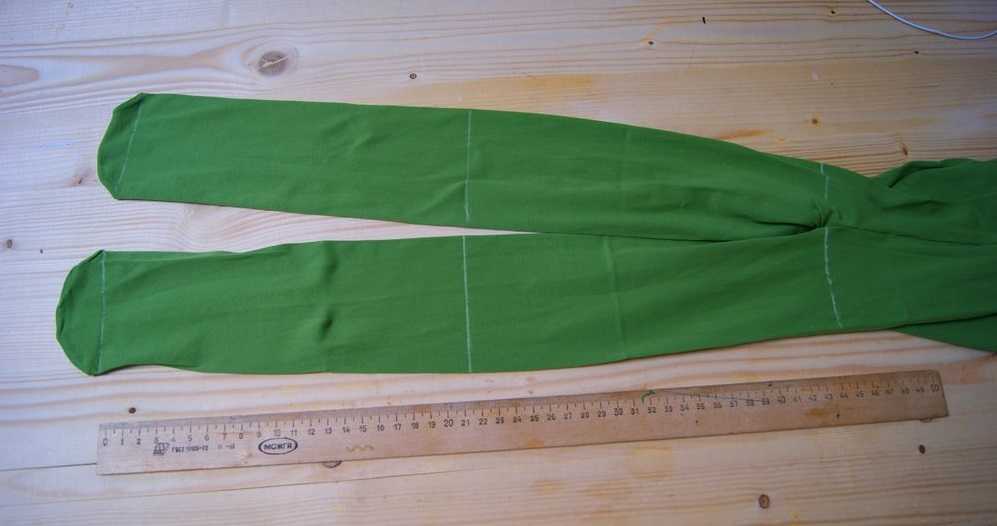 - Для изготовления юбки-пачки необходим фатин средней жесткости. Можно скомбинировать разные оттенки зеленого цвета. Количество материала зависит от длины изделия и желаемой пышности. В среднем уходит около 3 метров материала. Фатин нарезают на полоски шириной 20 см и длиной, равной длине юбки, умноженной на два. Далее берем резинку, шириной до 3 см и длиной, равно обхвату талии девочки минус 3–5 см. Стачиваем ее в кольцо и одеваем на спинку стула. Отрезы фатина складываем пополам и прикрепляем на резинке с помощью узла.