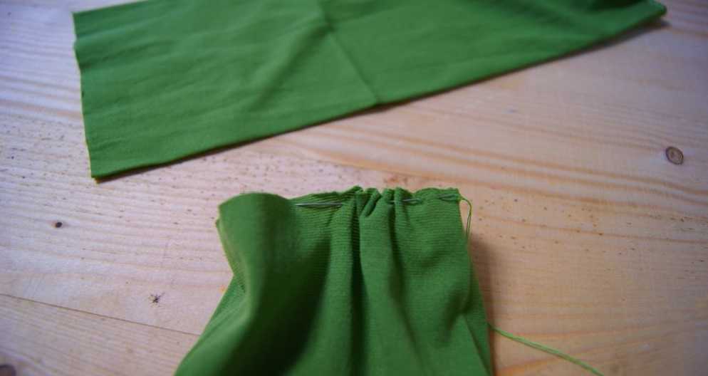 - иголка, зеленые нитки, швейная машинка.