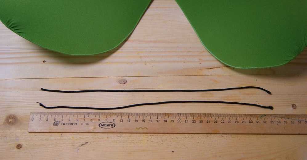 - Предварительно на резинку можно нашить материал. Он скроет ее и расширить площадь для пришивания деталей плавника.