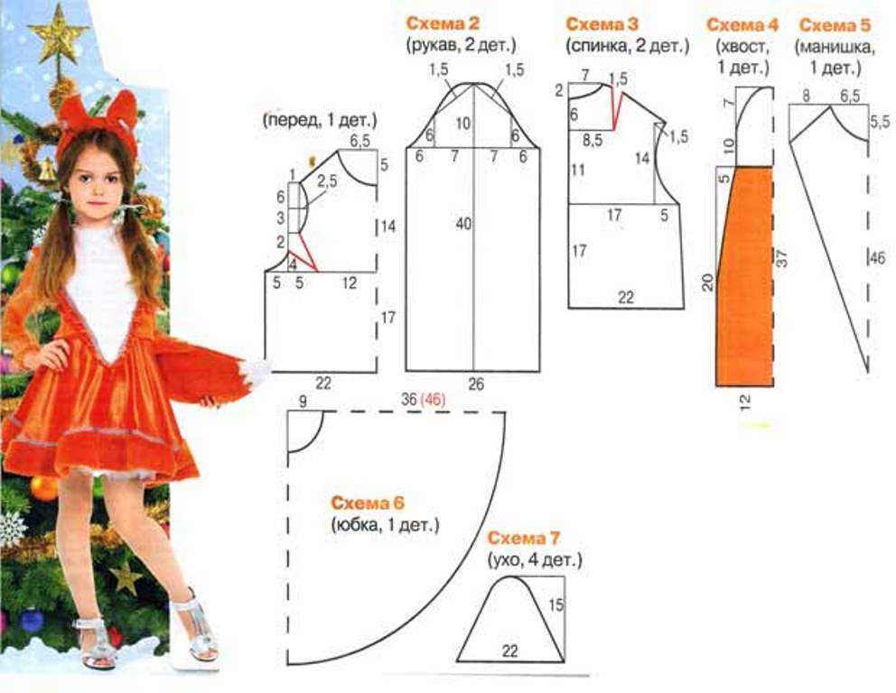 Можно выбрать костюм для девочки на Новый год в образе лисицы. Но и в этом случае можно, сократив семейные расходы сделать его самостоятельно. Для этого следует воспользоваться выкройкой, представленной ниже.