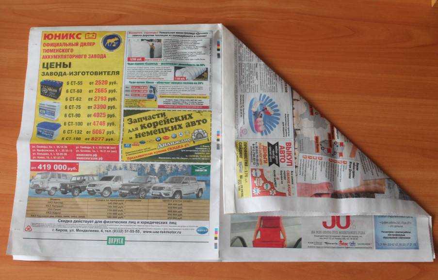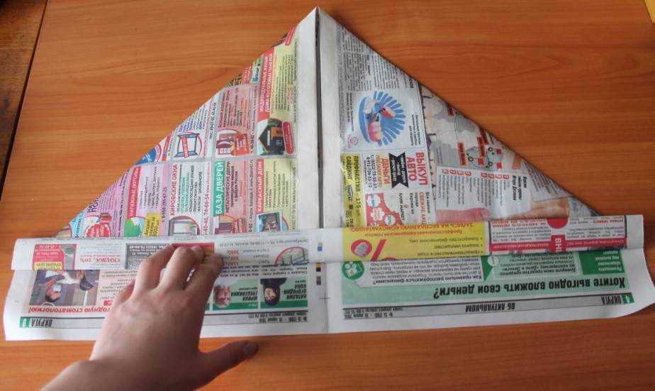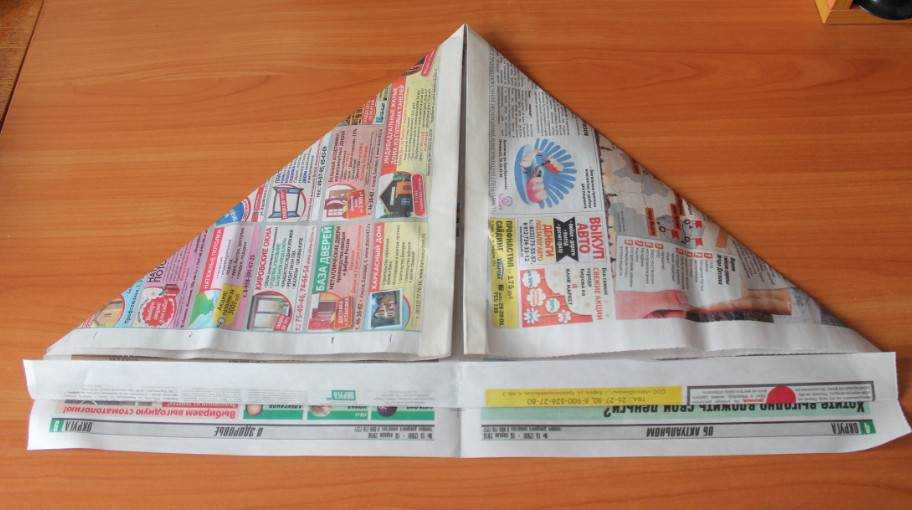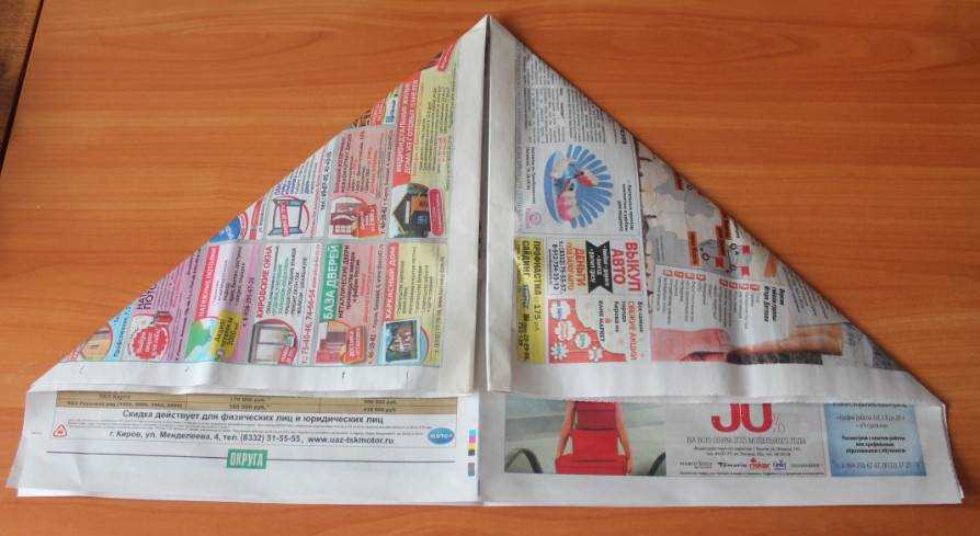 - Согнуть с обеих сторон части газеты по линии сгиба. Должен получиться квадрат с подгибами.